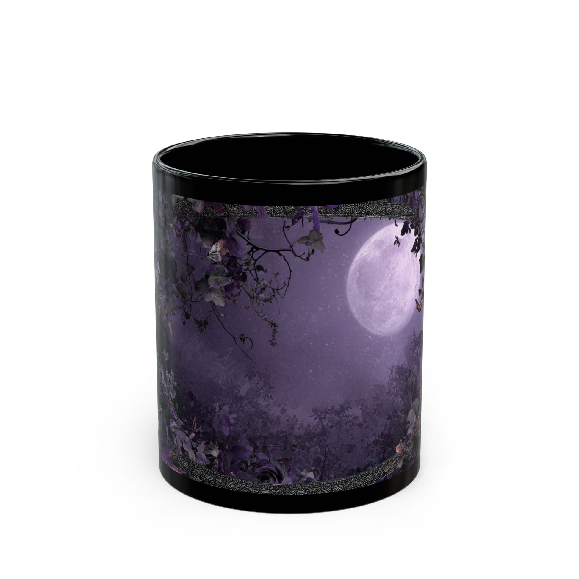 Designed for lovers of gothic aesthetics, dark romance, and eerie beauty, this mug features rich floral artwork intertwined with moonlit elements that evoke quiet gardens at twilight and enchanted night skies. The result is a piece that’s both visually striking and deeply atmospheric — perfect for cozy corners, sacred spaces, writing desks, or simply wherever you savor your favorite brew.